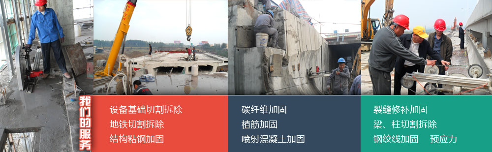 擁有自行研發生產的專業性混凝土切割機設備:液壓繩鋸機8臺、液壓墻鋸機4臺、液壓鉆孔機10臺,電動鉆孔機20臺